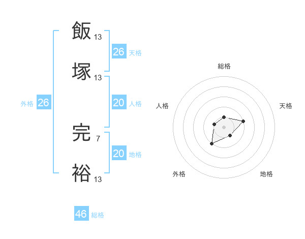 飯塚 完裕さんの天格は26画の2点!