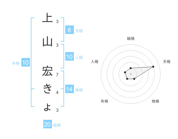 上山 宏きょさんを姓名の画数から五運を鑑定