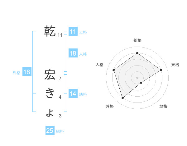乾 宏きょさんを姓名の画数から五運を鑑定