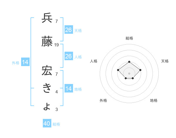 兵藤 宏きょさんを姓名の画数から五運を鑑定