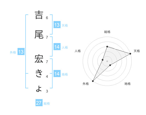 吉尾 宏きょさんの外格は13画の5点!