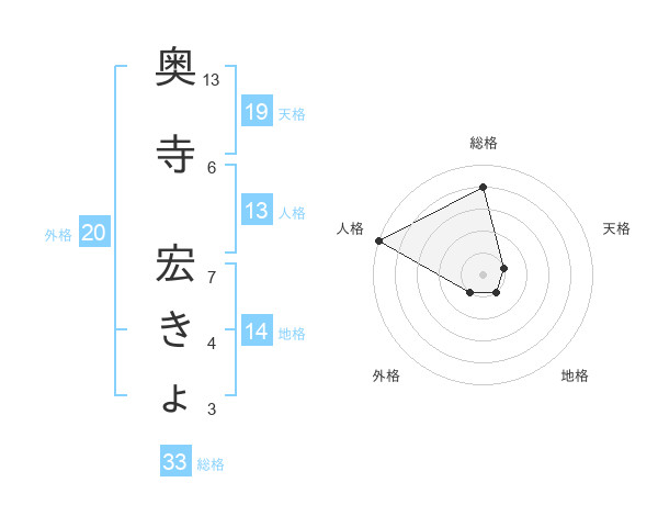 奥寺 宏きょさんを姓名の画数から五運を鑑定