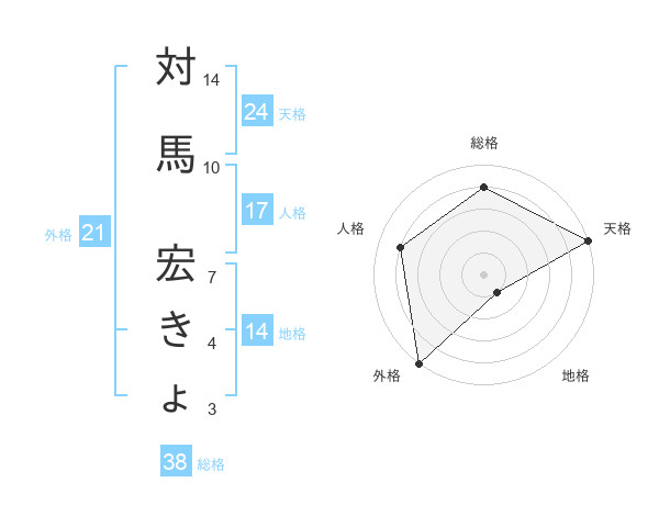 対馬 宏きょさんを姓名の画数から五運を鑑定