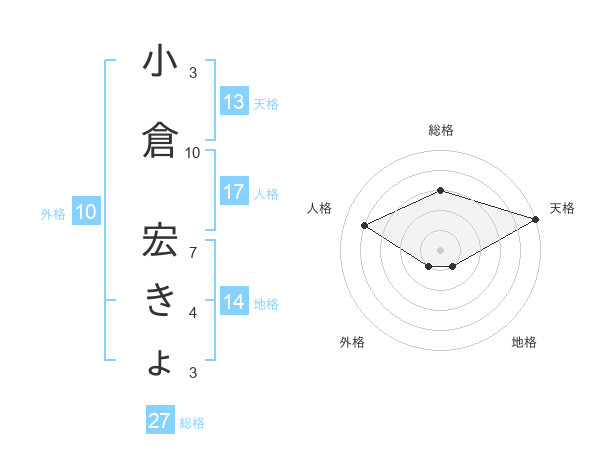 小倉 宏きょさんの天格は13画の5点!