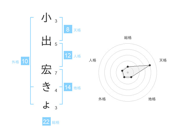 小出 宏きょさんの総格は22画の1点!