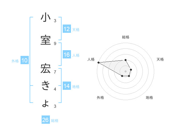 小室 宏きょさんを姓名の画数から五運を鑑定