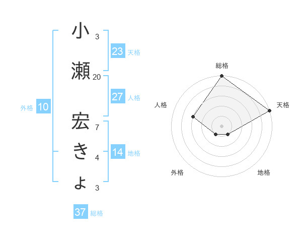 小瀬 宏きょさんを姓名の画数から五運を鑑定