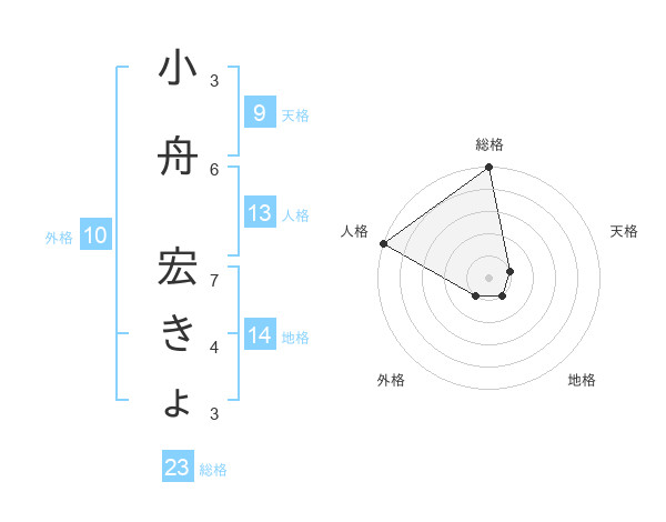 小舟 宏きょさんを姓名の画数から五運を鑑定
