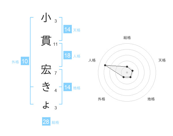 小貫 宏きょさんの天格は14画の1点!