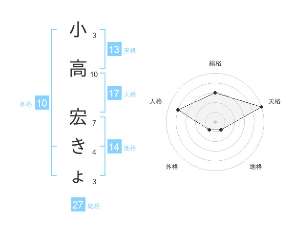 小高 宏きょさんの総格は27画の3点!