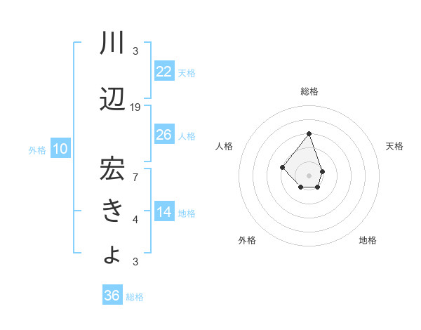 川辺 宏きょさんを姓名の画数から五運を鑑定
