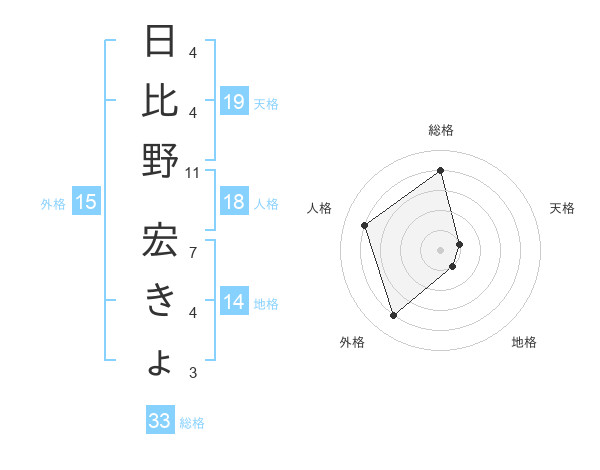 日比野 宏きょさんの総格は33画の4点!