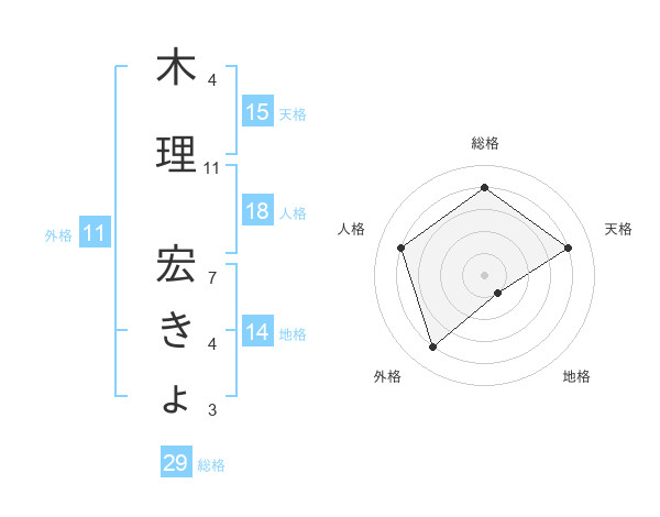 木理 宏きょさんを姓名の画数から五運を鑑定