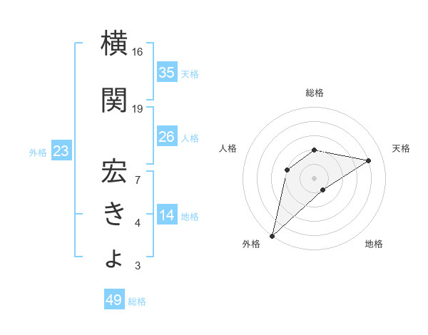 横関 宏きょさんの外格は23画の5点!