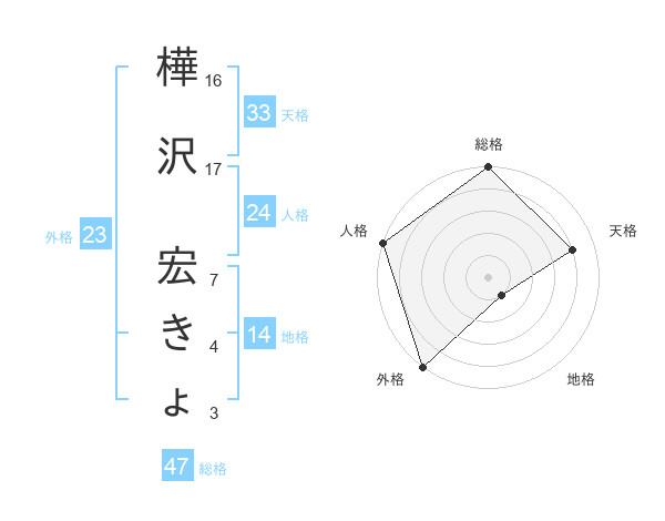 樺沢 宏きょさんの総格は47画の5点!