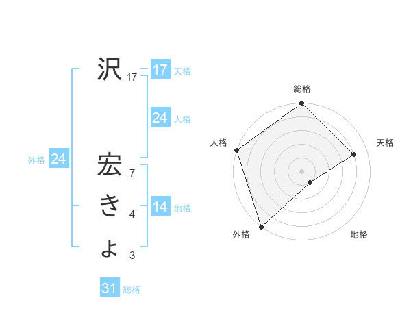 沢 宏きょさんの総格は31画の5点!