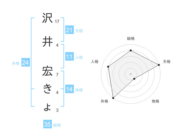 沢井 宏きょさんを姓名の画数から五運を鑑定