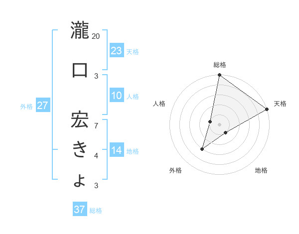 瀧口 宏きょさんを姓名の画数から五運を鑑定