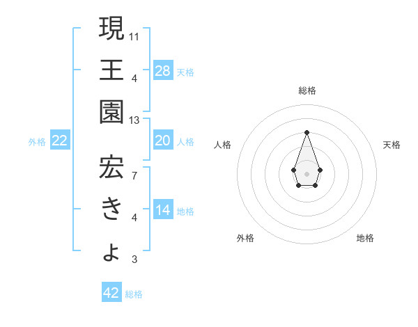 現王園 宏きょさんを姓名の画数から五運を鑑定