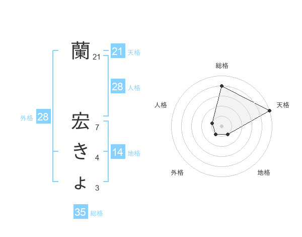 蘭 宏きょさんを姓名の画数から五運を鑑定