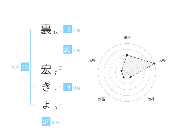 裏 宏きょさんの天格は13画の5点!