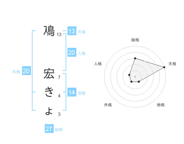 鳰 宏きょさんを姓名の画数から五運を鑑定