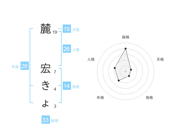 麓 宏きょさんを姓名の画数から五運を鑑定