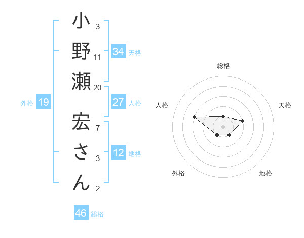 小野瀬 宏さんさんを姓名の画数から五運を鑑定