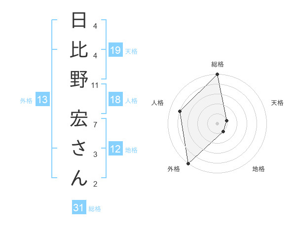 日比野 宏さんさんを姓名の画数から五運を鑑定