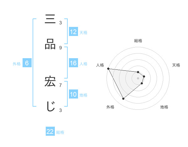 三品 宏じさんの人格は16画の5点!