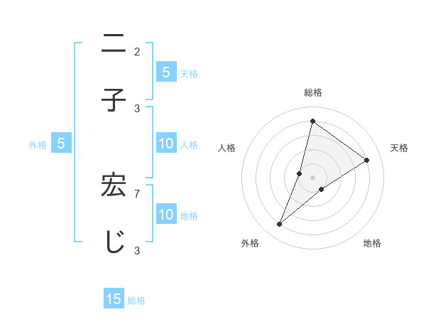 二子 宏じさんの総格は15画の4点!