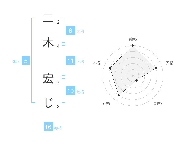 二木 宏じさんの総格は16画の5点!
