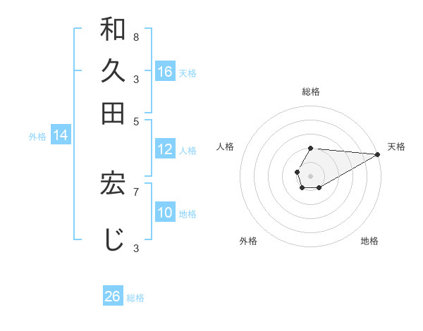 和久田 宏じさんを姓名の画数から五運を鑑定