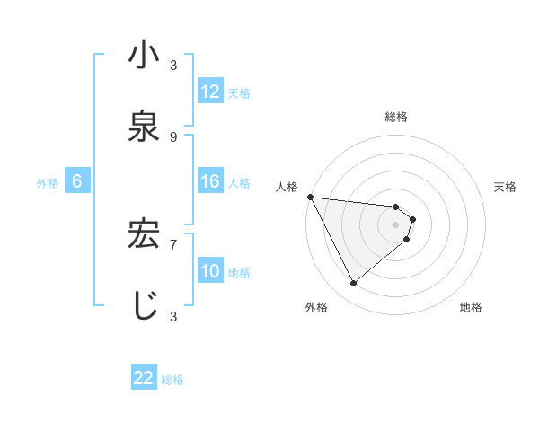 小泉 宏じさんの人格は16画の5点!
