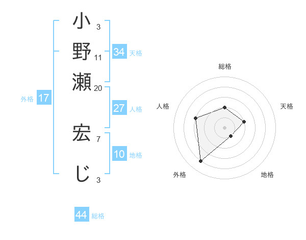 小野瀬 宏じさんを姓名の画数から五運を鑑定