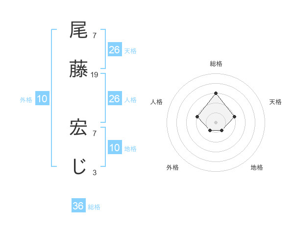 尾藤 宏じさんの天格は26画の2点!