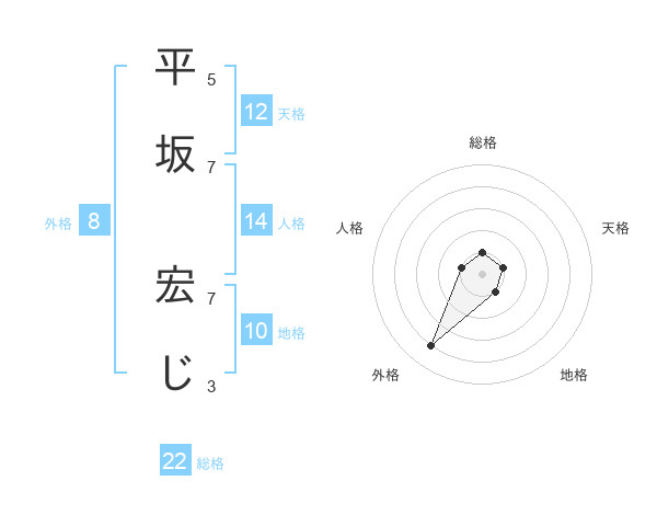 平坂 宏じさんの総格は22画の1点!