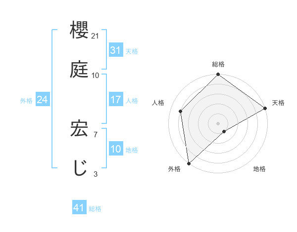 櫻庭 宏じさんの総格は41画の5点!
