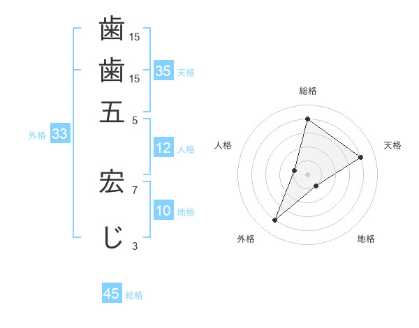 歯歯五 宏じさんを姓名の画数から五運を鑑定