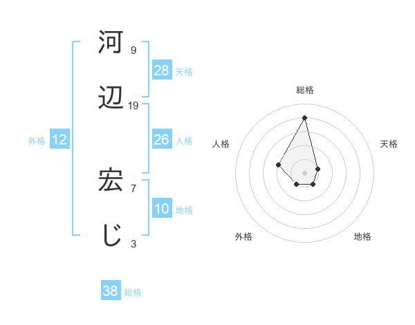河辺 宏じさんを姓名の画数から五運を鑑定