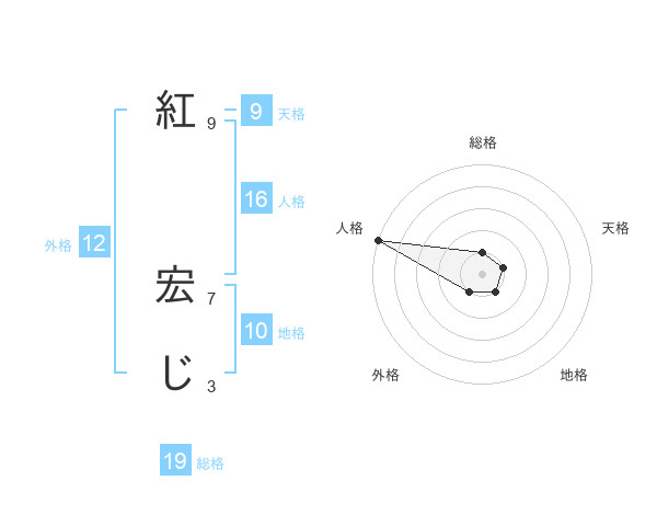 紅 宏じさんの総格は19画の1点!