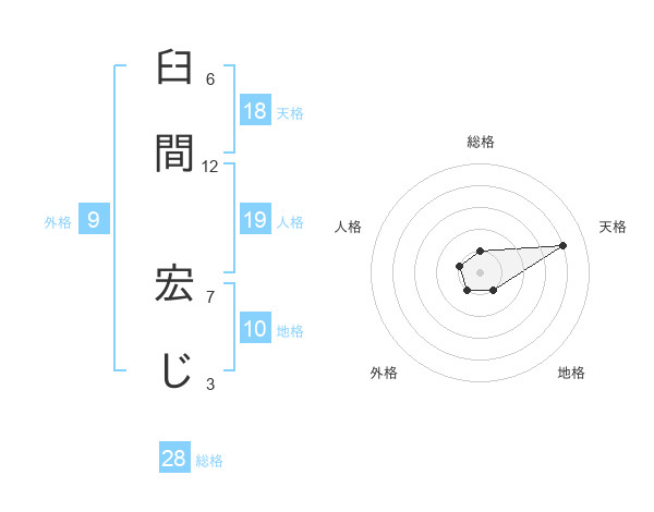 臼間 宏じさんを姓名の画数から五運を鑑定