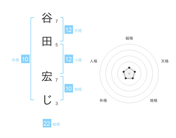 谷田 宏じさんの総格は22画の1点!