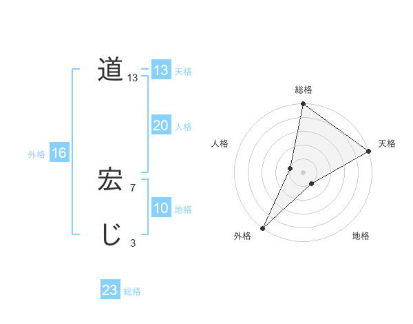 道 宏じさんの天格は13画の5点!
