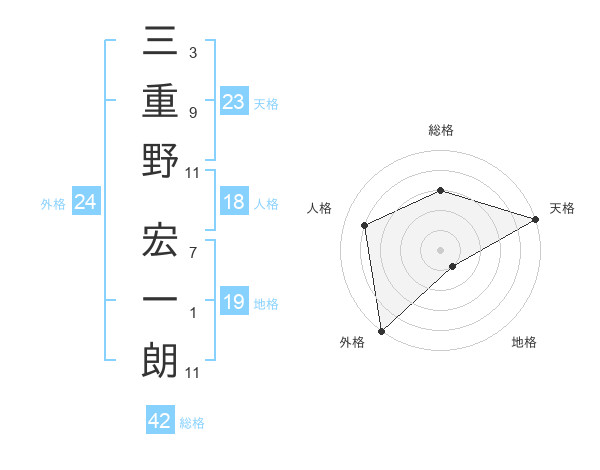 三重野 宏一朗さんを姓名の画数から五運を鑑定