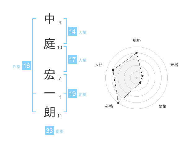 中庭 宏一朗さんの総格は33画の4点!
