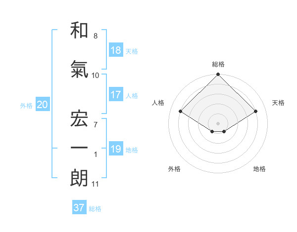 和氣 宏一朗さんを姓名の画数から五運を鑑定