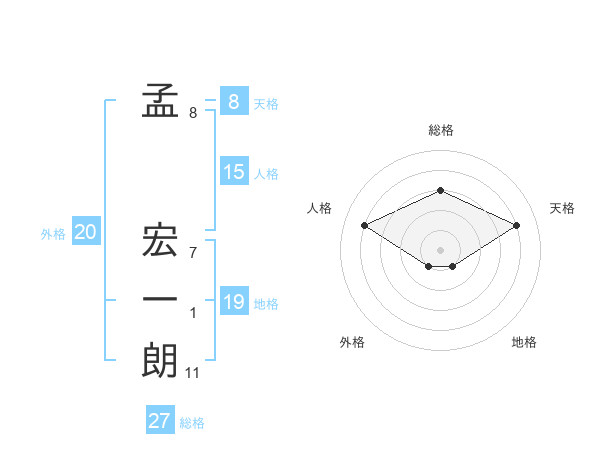 孟 宏一朗さんの総格は27画の3点!