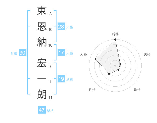 東恩納 宏一朗さんの総格は47画の5点!