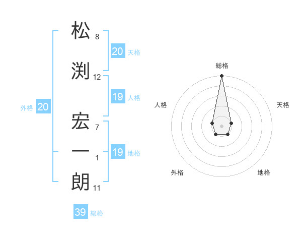 松渕 宏一朗さんを姓名の画数から五運を鑑定